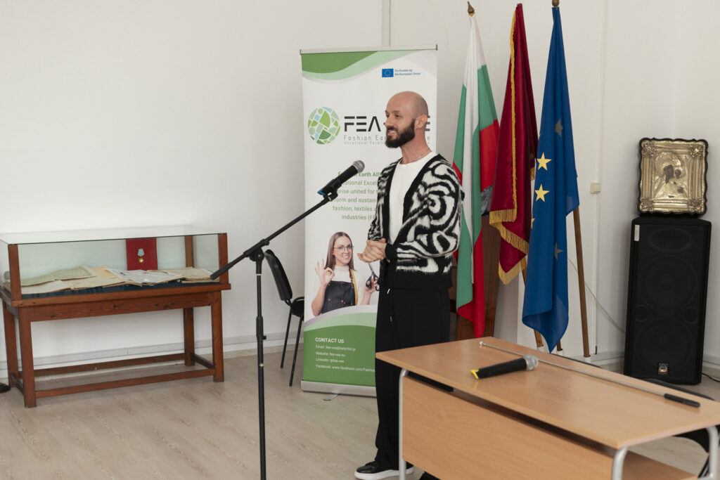 The program began with a presentation of the FEA-VEE project, delivered by the team of the Bulgarian Fashion Association. Attendees were introduced to the project’s mission and its role in developing a greener, circular and sustainable economic models in the textile, fashion and clothing industry. The discussion highlighted new opportunities for emerging designers to expand beyond local markets, collaborate across borders, and integrate sustainable practices into their creative processes.