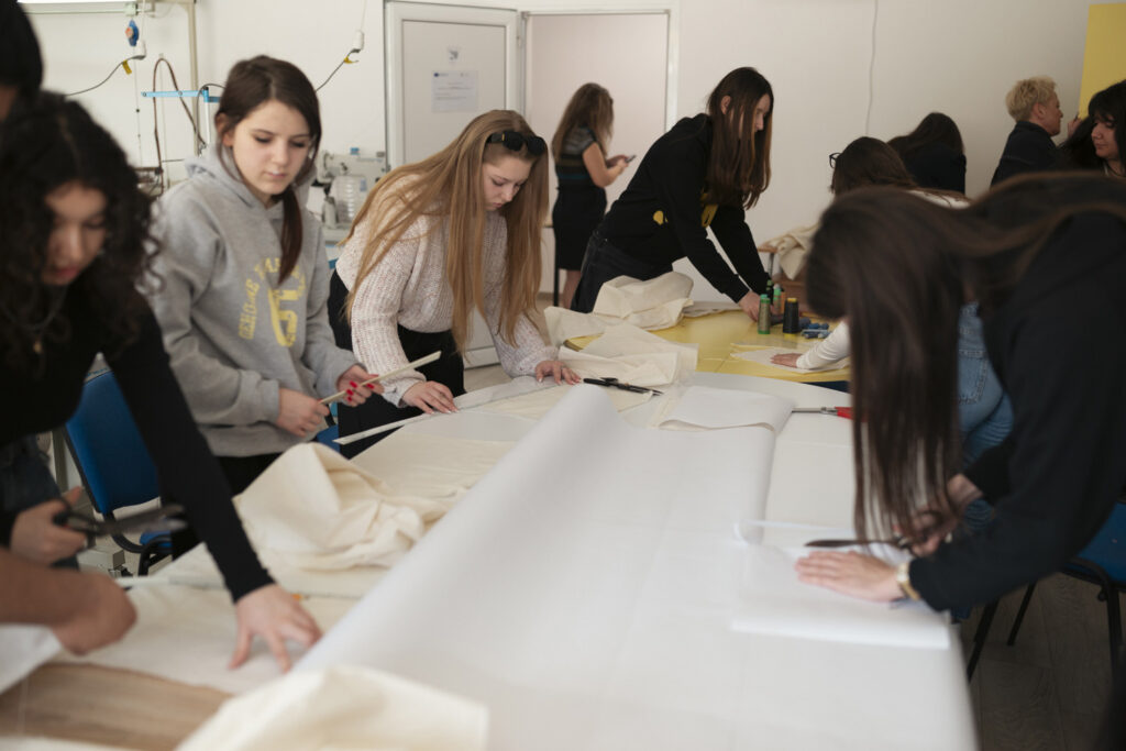 The second half of the event transformed theory into practice. Participants engaged in a hands-on creative workshop focused on producing textile panels from recycled materials. This collaborative session challenged students to rethink waste and explore the artistic potential of discarded textiles. The activity aligned perfectly with the event’s theme, “The Clean Waters of the Danube,” reinforcing the connection between fashion and environmental sustainability.